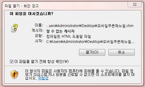 다운받은 후 " \실행시 하단의 이 파일을 열기전에 항상 확인" 체크를 해제하셔야