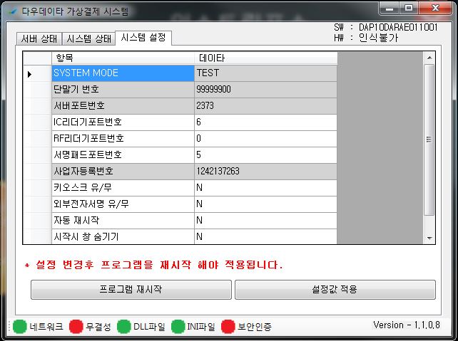 윈도우xp의 경우 다우 VCAT연동 모듈 설치가 불가능하며 7 이상부터 가능합니다.