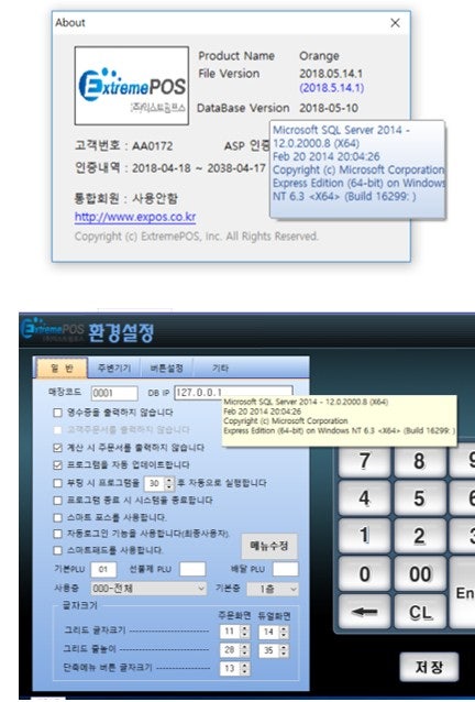 POS 프로그램 환경설정- 일반 Tab - DB IP 부분에 마우스를 위치. 팝업 창 확인.