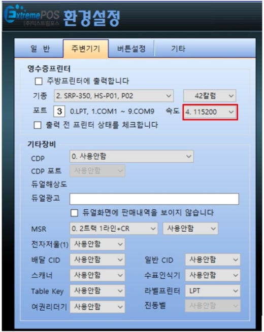 2)개선 사항: POS 프로그램과 카드 단말기 두 곳 모두 동일 속도로 설정.