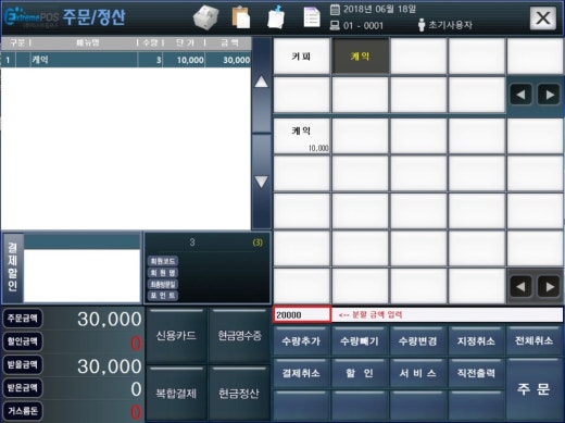주문화면에서 분할 결제 할 금액 입력하고 신용카드 버튼을 누르면 승인 됨.