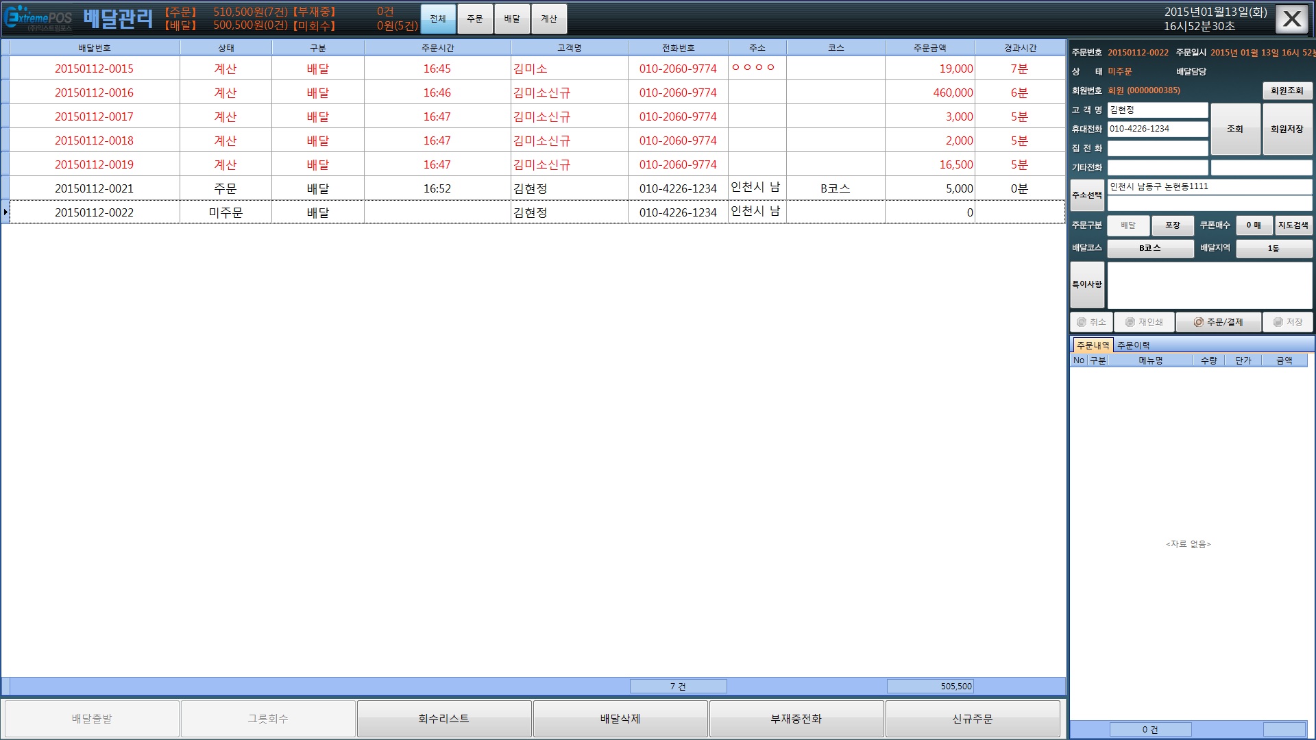 업데이트소식 HOME > 고객지원 > 업데이트소식 프로그램 업데이트 소식을 알려드립니다. 제 목 오렌지 업데이트 내역(2015.01.12.4) 작 성 일 2015-01-13 오후 4:58:03 첨부파일 *회원조회시 마지막에 사용한 숫자&초성을 기억해 사용하도록 수정ex) 마지막 회원조회시 숫자사용했으면 다음회원조회때도 숫자버튼이 기본 *배달화면 타입 그리드 형식 추가.후방-환경설정-POS환경-배달관련-배달설정1 이전글 'ASP폰인증' 기능추가 다음글 오렌지 업데이트 내역(2014.12.01)